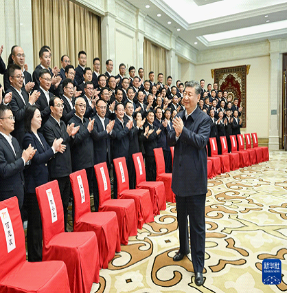 9月23日下午,中共中央总书记、国家主席、中央军委主席习近平在乌鲁木齐亲切接见新疆生产建设兵团领导班子成员及有关方面负责同志,并同大家合影留念。新华社记者 申宏 摄